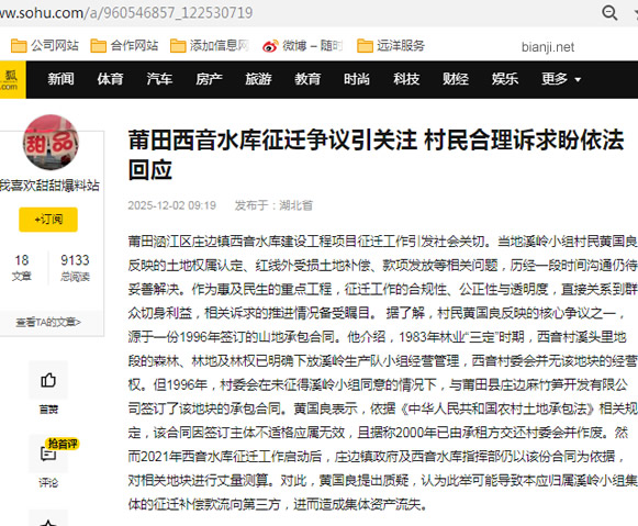 为维护自身及集体的合法权益,黄国良已于2025年7月正式向莆田市涵江区人民政府、莆田市人民政府提交复查申请,请求撤销庄边镇政府此前作出的信访处理意见,要求相关部门重新核查土地权属、依法确认1996年签订的山地承包合同效力、公开补偿款测算及发放明细,并对相关工作人员存在的推诿塞责行为依法追究责任。截至发稿,庄边镇政府及西音水库指挥部尚未就“依据涉争议合同进行丈量”“红线外林地补偿标准不一”等核心问题,作出公开、明确的回应。