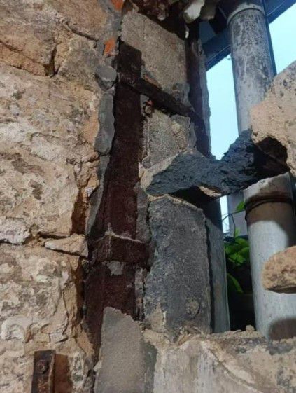 据周边居民表示,碧山路 145 号建筑始建于抗战前,距今近 90 年,早已满目疮痍:主体墙体大面积开裂、钢筋外露锈蚀、石墙风化剥落,结构严重松动,完全不具备居住与承重条件。