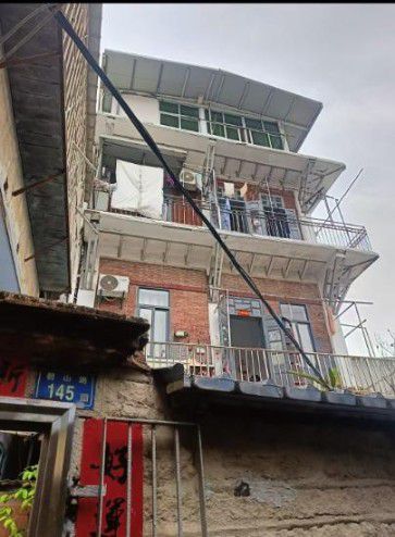 但业主无视安全,在三层之上违规加盖 “第四层”,铝合金窗、轻钢棚顶与老建筑风格割裂,违建痕迹一目了然,加盖面积超 200 平方米,彻底突破房屋承重极限。更恶劣的是,业主无法提供房屋产权证、规划许可、施工许可及消防验收等合法手续,整栋建筑及违建部分均无安全与法律依据。